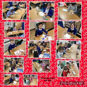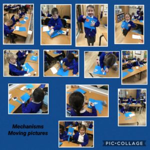 Year 1 started the week by looking at mechanisms within story books. Next they experimented and made a slider and lever mechanism using card, glue, scissors and paper fasteners. They used their own ideas and designed a moving Christmas card that they will make next week. It will be fantastic to see their finished products.