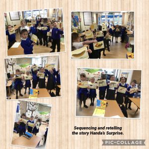 Year 1 have read the story Handa’s Surprise, the story is based in Africa which linked with our Geography work. We sequenced the story and had a go at retelling the story in our own words. We came up with some great adjectives to describe the animals and fruits.